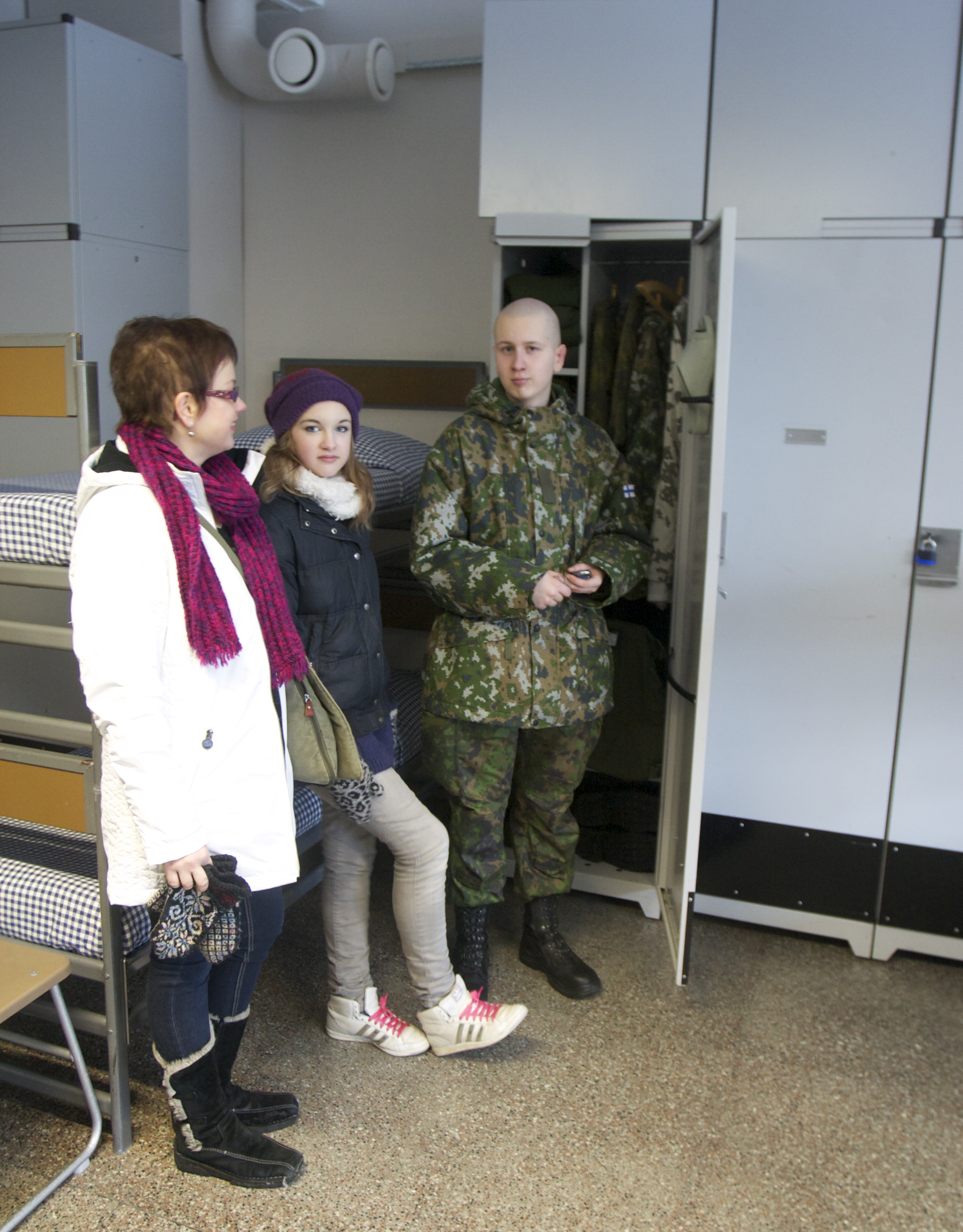 Virtsakiidättimet takana ovessa koristavat uljasta sotilasta 😀 Tukka on uusinta muotia kyseisessä tuvassa jossa kaikilla on sama tyyli. Oikee mulipäitten paratiisi 🙂