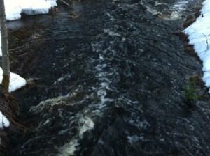 Tarun vein kaverille yökylään  ja sen jälkeen olenkin viettänyt levollista eloa yksin kotona. Kävin pienellä kävelyllä tiluksilla lähinnä haukkaamassa happea. Meidän joki on nyt melkoisessa virrassa ja kohina on kuin musiikkia korville ja sitä voisi katsoa ja kuunnella vaikka kuinka pitkään.