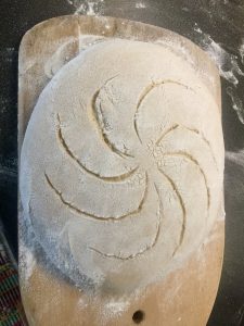 Heti kun ottaa jääkaapista ja on levittäny päälle riisijauhoa, on helppo tehdä viiltoja jos ja kun niitä haluaa tehä 😀