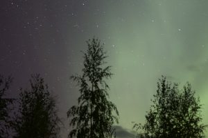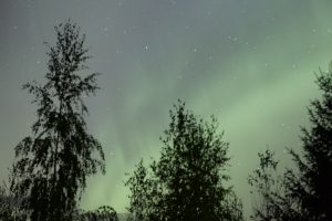 Omalta pihalta otettu kuva revontulista.