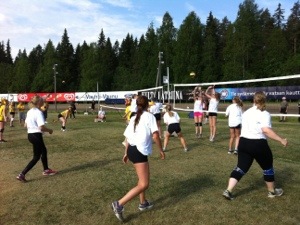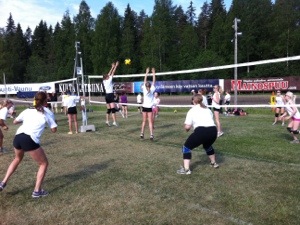 Aika hyvin kerettiin peliin mukaan sillä ne alkoi pikkusen myöhässä. Riitta kerkes hyvin alotukseen ja Taru ei tietenkään pelannu yhtään polven takia.