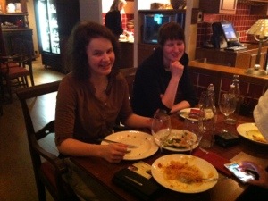 Sisään hotelliin ja kirjautumisen jälkeen lähettiin pienelle kävelylle eli osa jäätelölle ja osa kahville. Tunnin verran noin käveltiin ja tutkailtiin mitä ympärillä on kunnes takas hotelliin ja oottelemaan muita tulijoita. Muut tulikin seitsemän jälkeen ja Palosaaret tuli juuri sopivasti ruokailuun 🙂 Koko porukka vihdoinkin kasassa ja edessä mitä mainiointa ruokaa. Kanapasta oli niin hyvää, että voin sanoa huoletta, että se oli parasta pastaa mitä olen syöy koskaan. !!! ERITTÄIN HYVÄÄ !!!