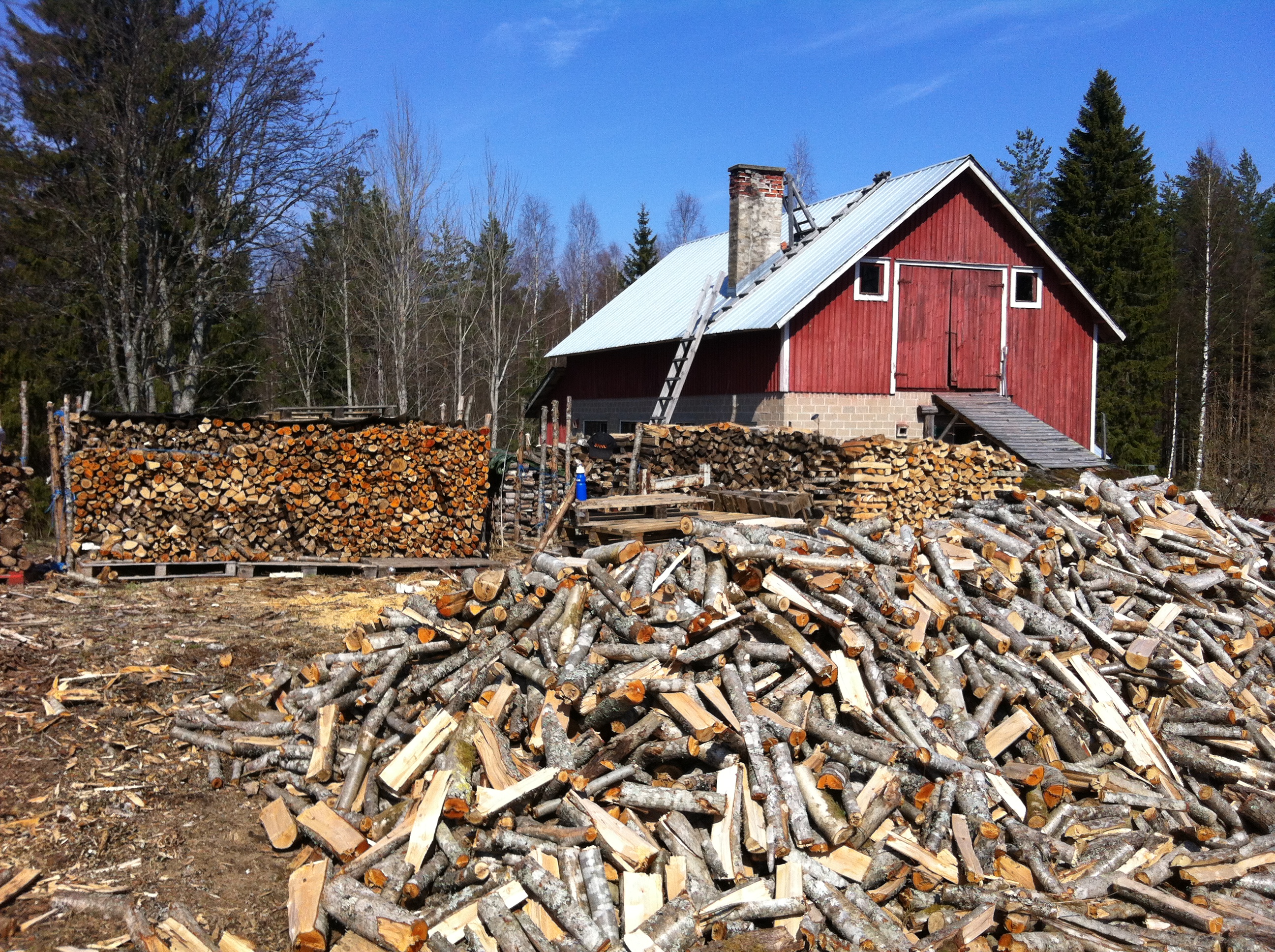 Minnan syntymäpäivää vietin paljon ulkona klapipinon äärellä. Sain tehtyä siinä miettiessä ja muistellessa ison pinon mutta se iso kasa missä klapit on sikin sokin näytti ettei siitä ole hävinny juuri mitään 😀